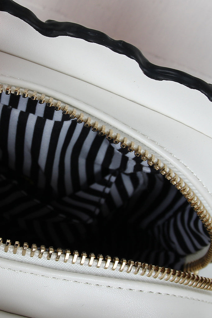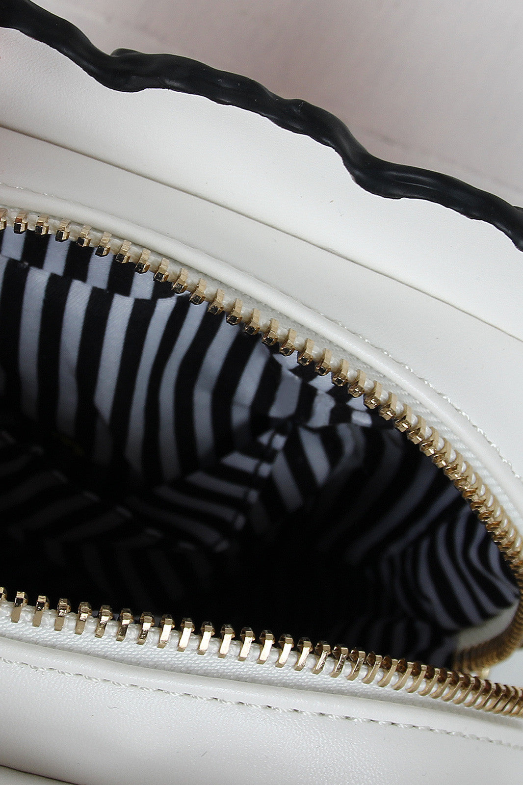 Add a pop of style to your outfit with this popcorn bag ! Constructed from colorful leatherette with stitching detail, zippered top, and threaded chain shoulder strap. Finished with fully lined interior and one slip pocket.