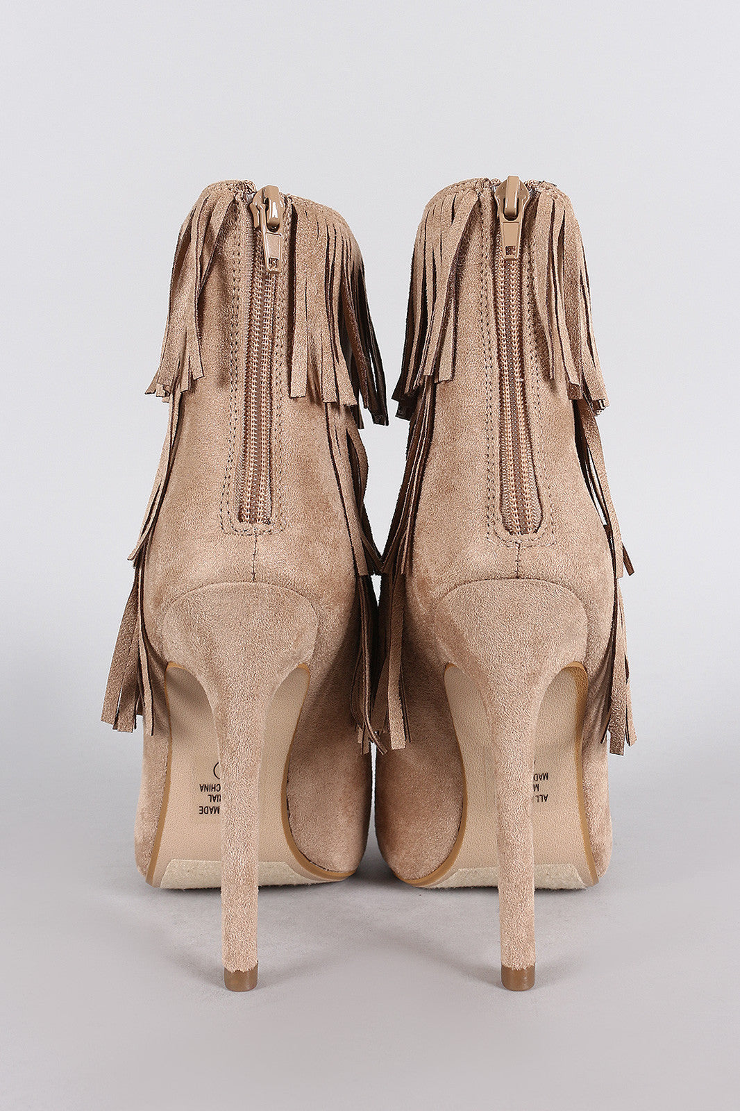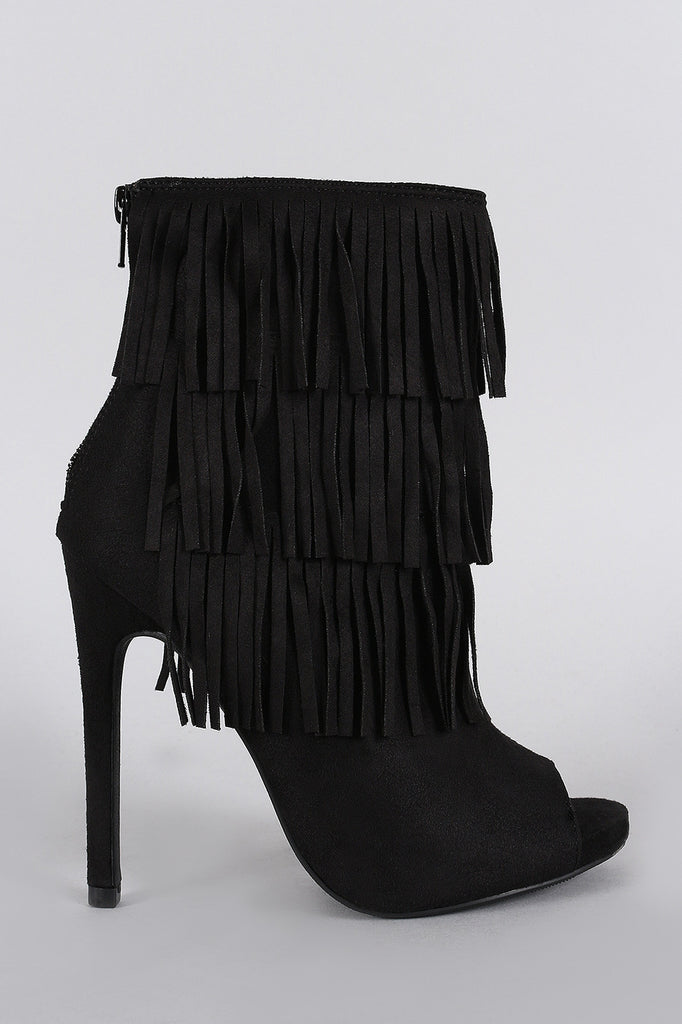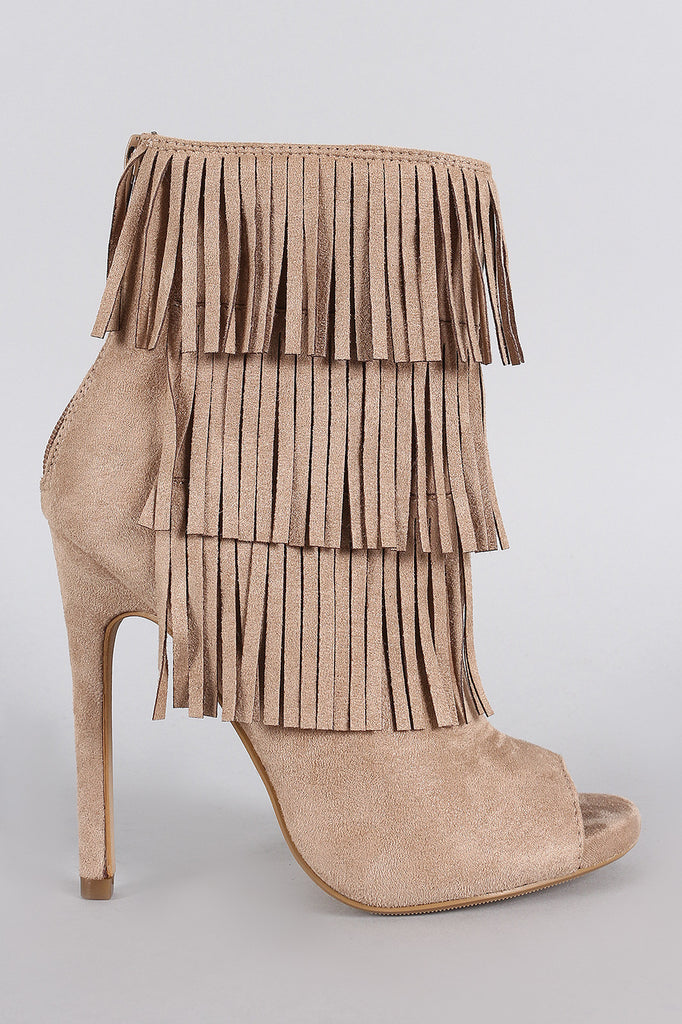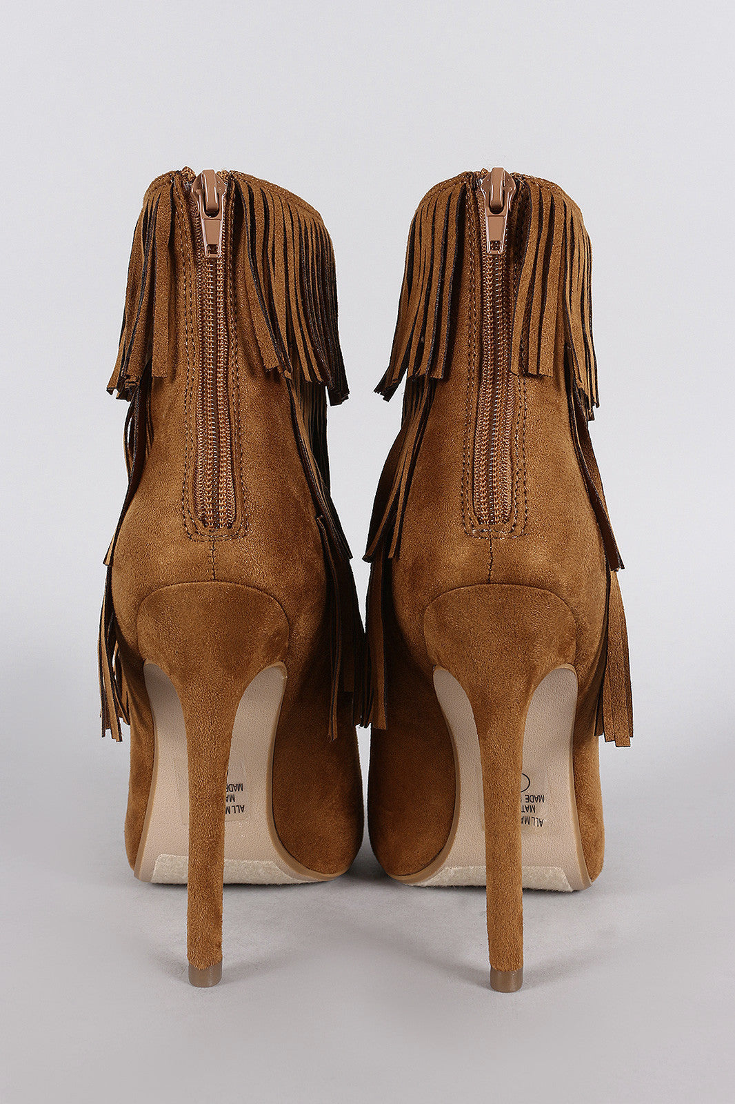 These striking fringe detail, and stiletto heel. Finished with cushioned insole, soft interior lining, and rear zipper closure for easy on/off.Material: Faux Suede (man-made)Sole: Treaded