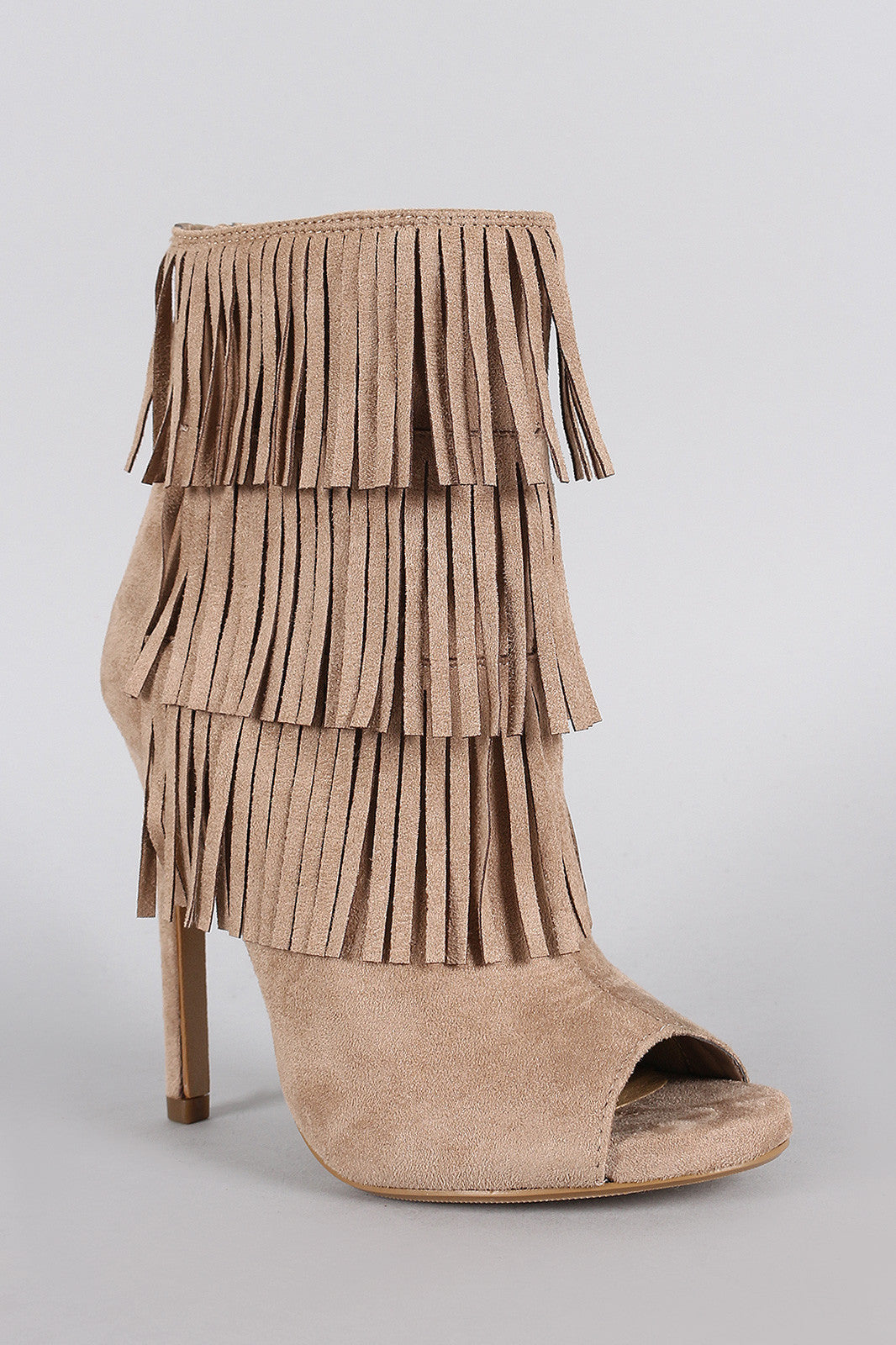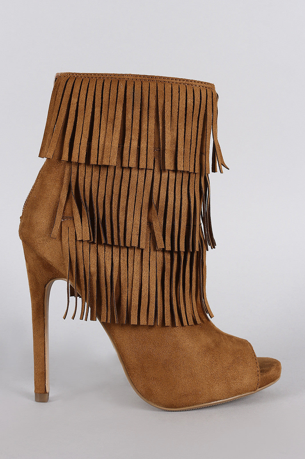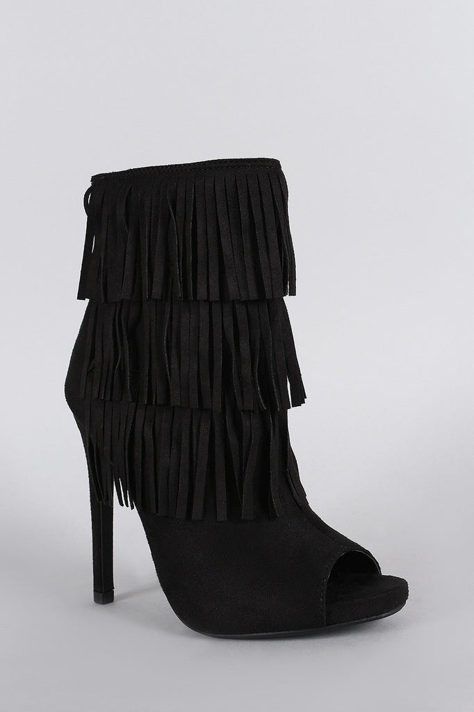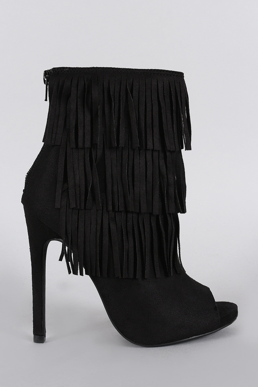 These striking fringe detail, and stiletto heel. Finished with cushioned insole, soft interior lining, and rear zipper closure for easy on/off.Material: Faux Suede (man-made)Sole: Treaded
