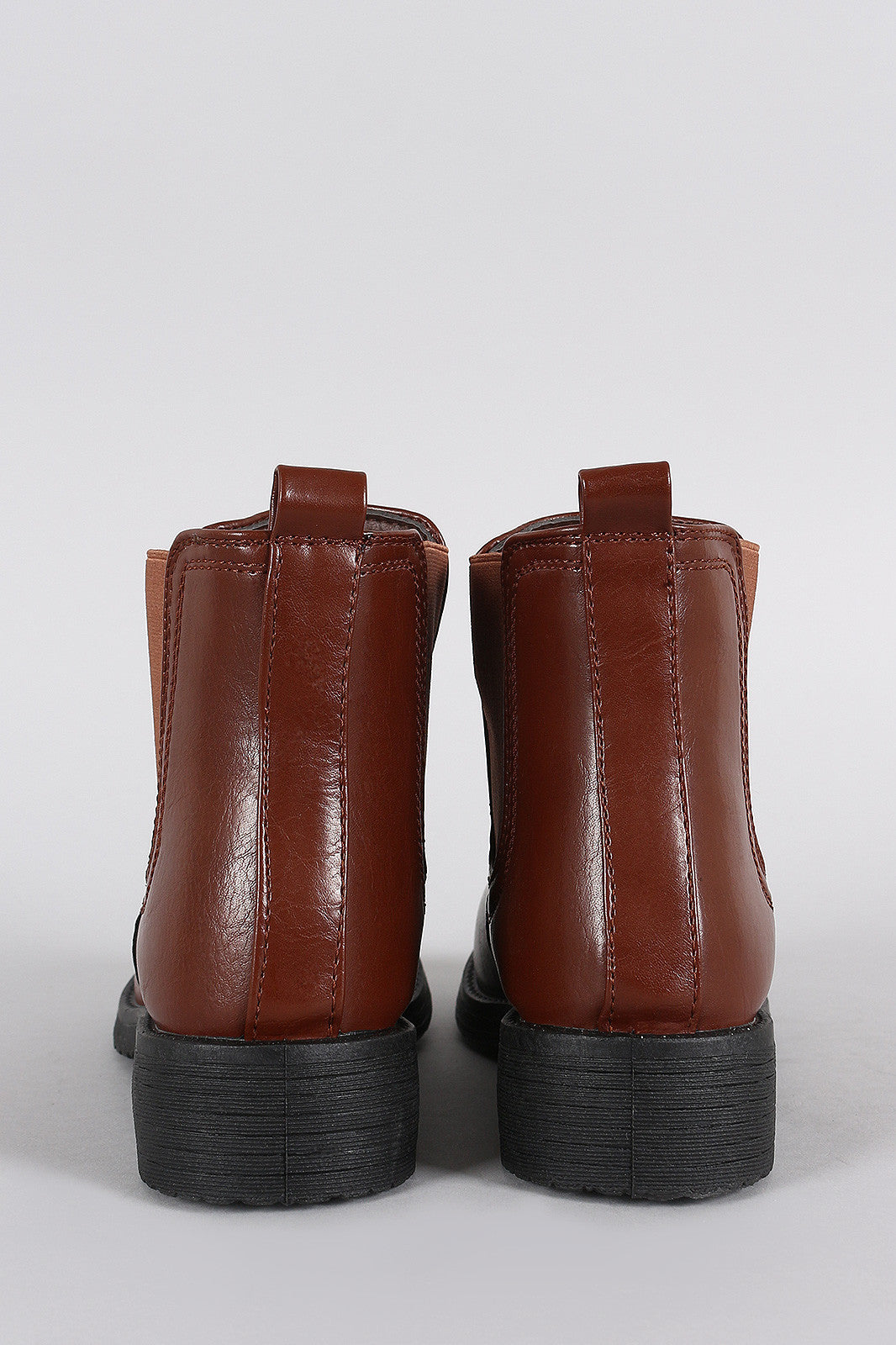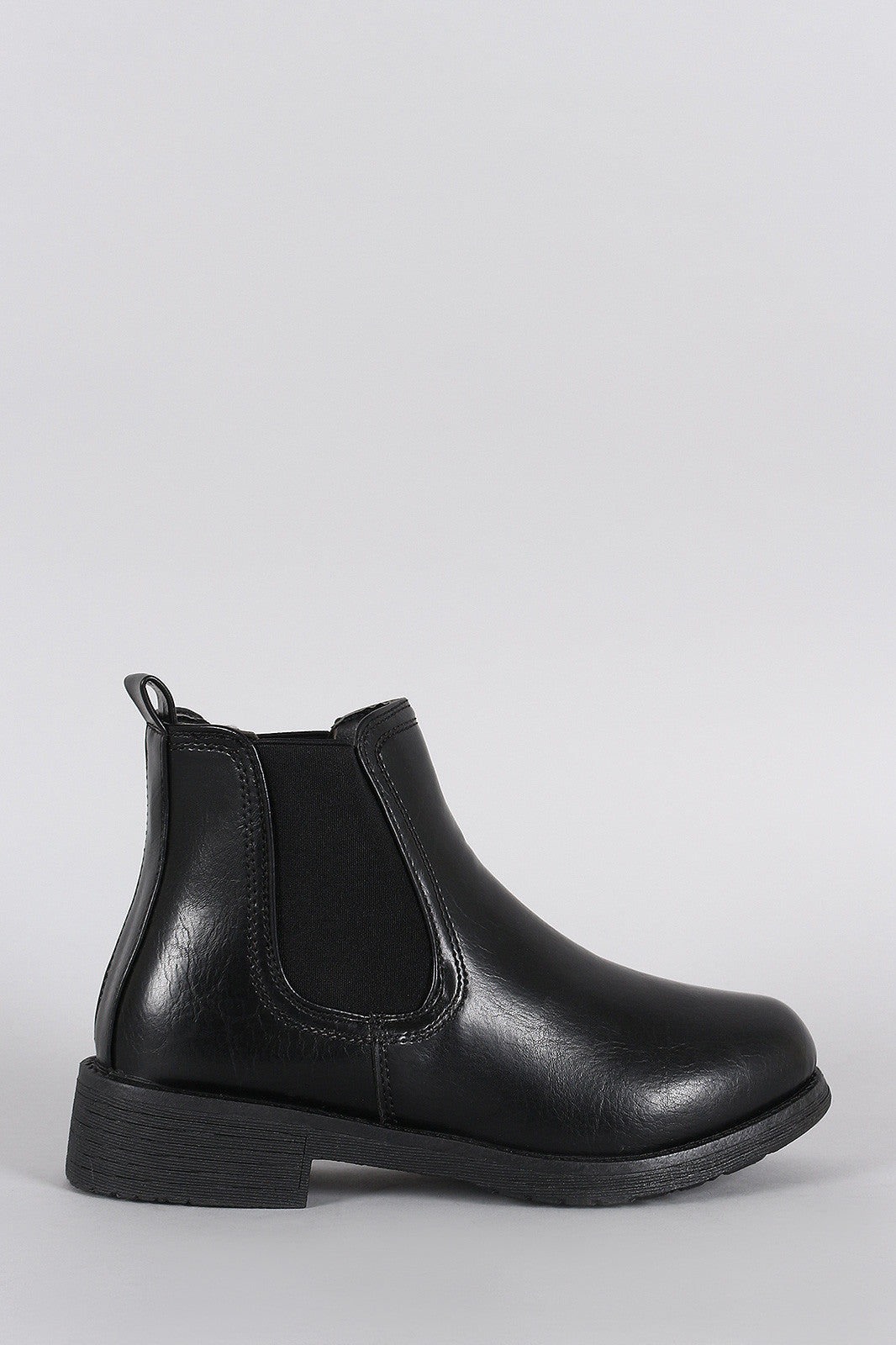 These ankle boots were designed with elastic gores for an eye catching custom fit; easy pull-on style. Round toe structure. Finished on a stacked heel.