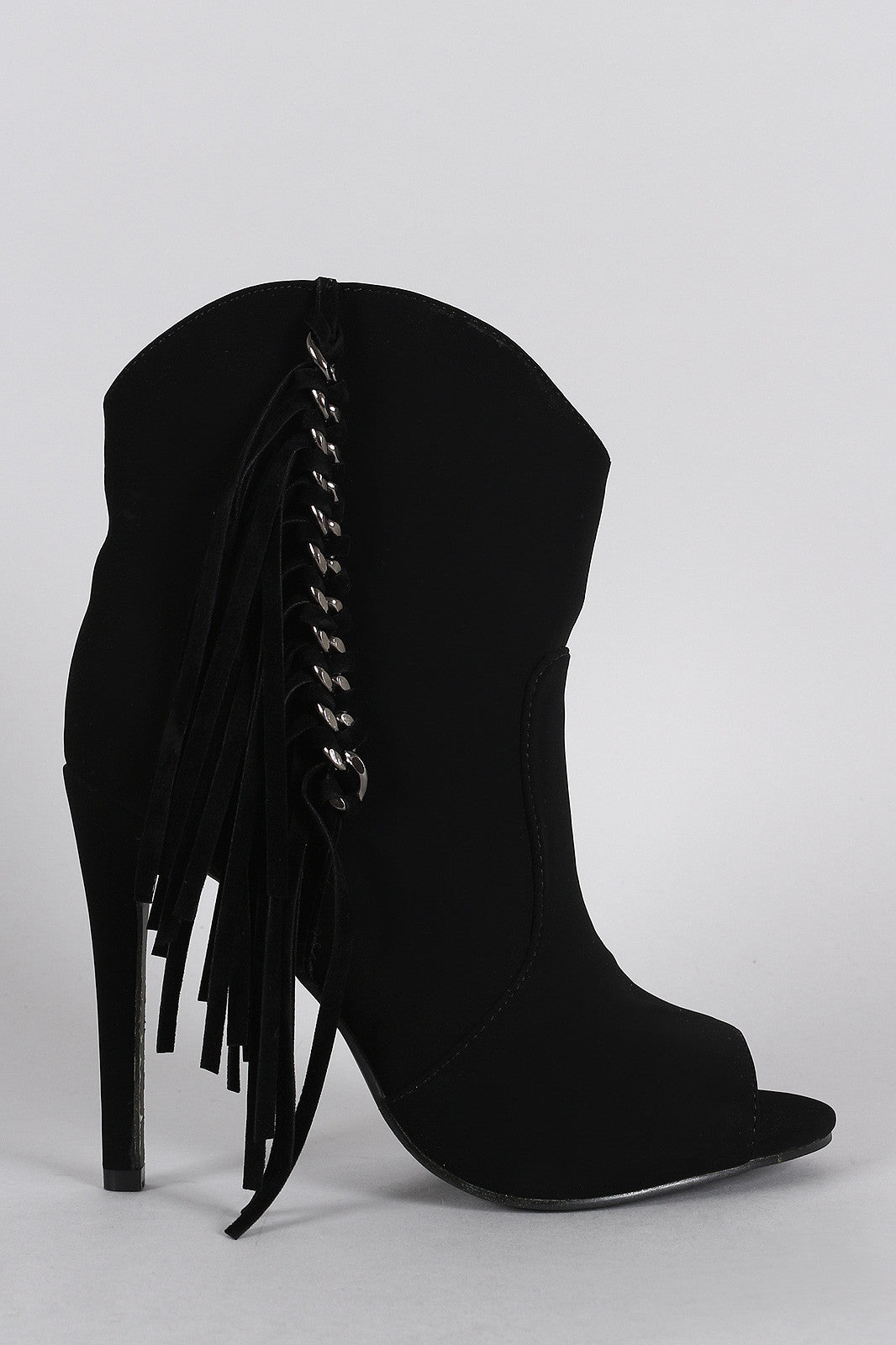 These fantastic fringe detail, and wrapped stiletto heel. Finished with lightly cushioned insole, smooth lining, and pull-on construction.Material: Nubuck (man-made)Sole: Synthetic