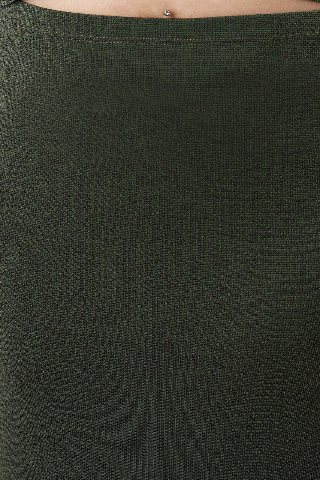 This skirt features an elasticized waistline, side slit design, stitching accents, and finished with maxi length. Accessories sold separately. Made in U.S.A. 95% Rayon, 5% Spandex.