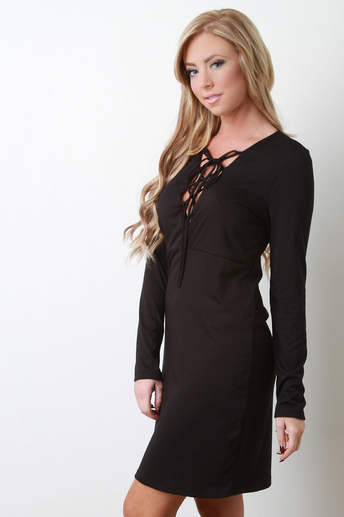 This jersey lace up design, long sleeves, and relaxed fit. Accessories sold separately. Made in U.S.A. 69% Rayon, 26% Polyester, 5% Spandex.