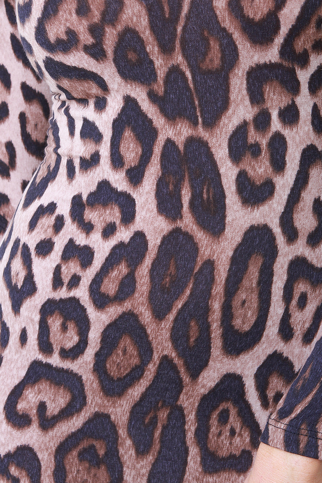 A leopard print jersey knit, a foldover off-the-shoulder design, and long sleeves. Accessories sold separately. Made in U.S.A. 95% Polyester, 5% Spandex.