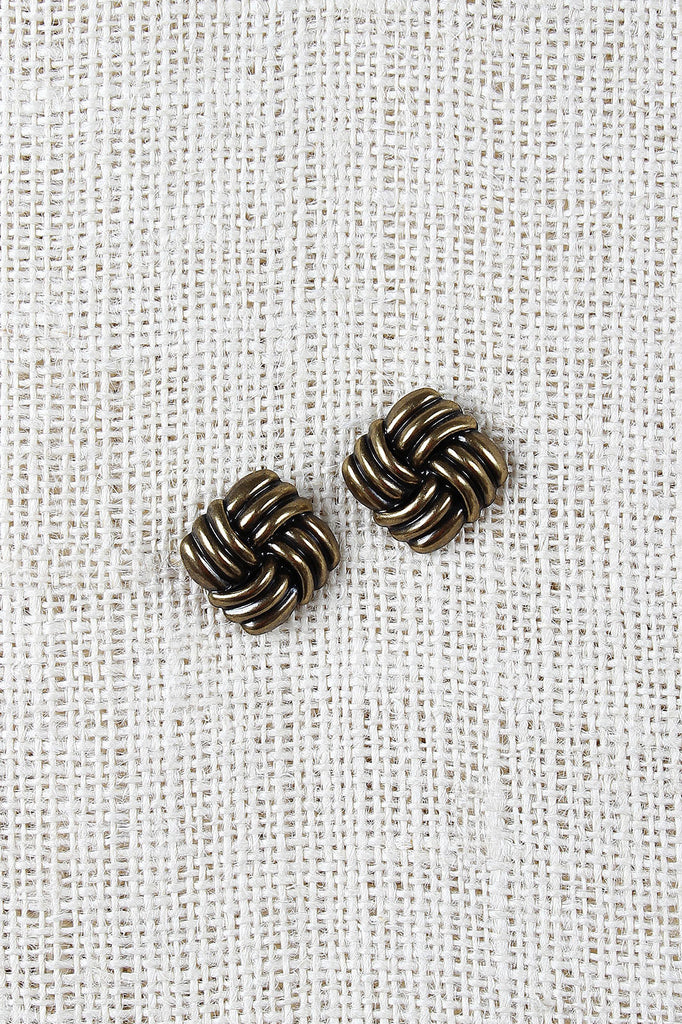 These Art Deco-inspired earrings feature a square shape with ridged woven design, finished with post backs.