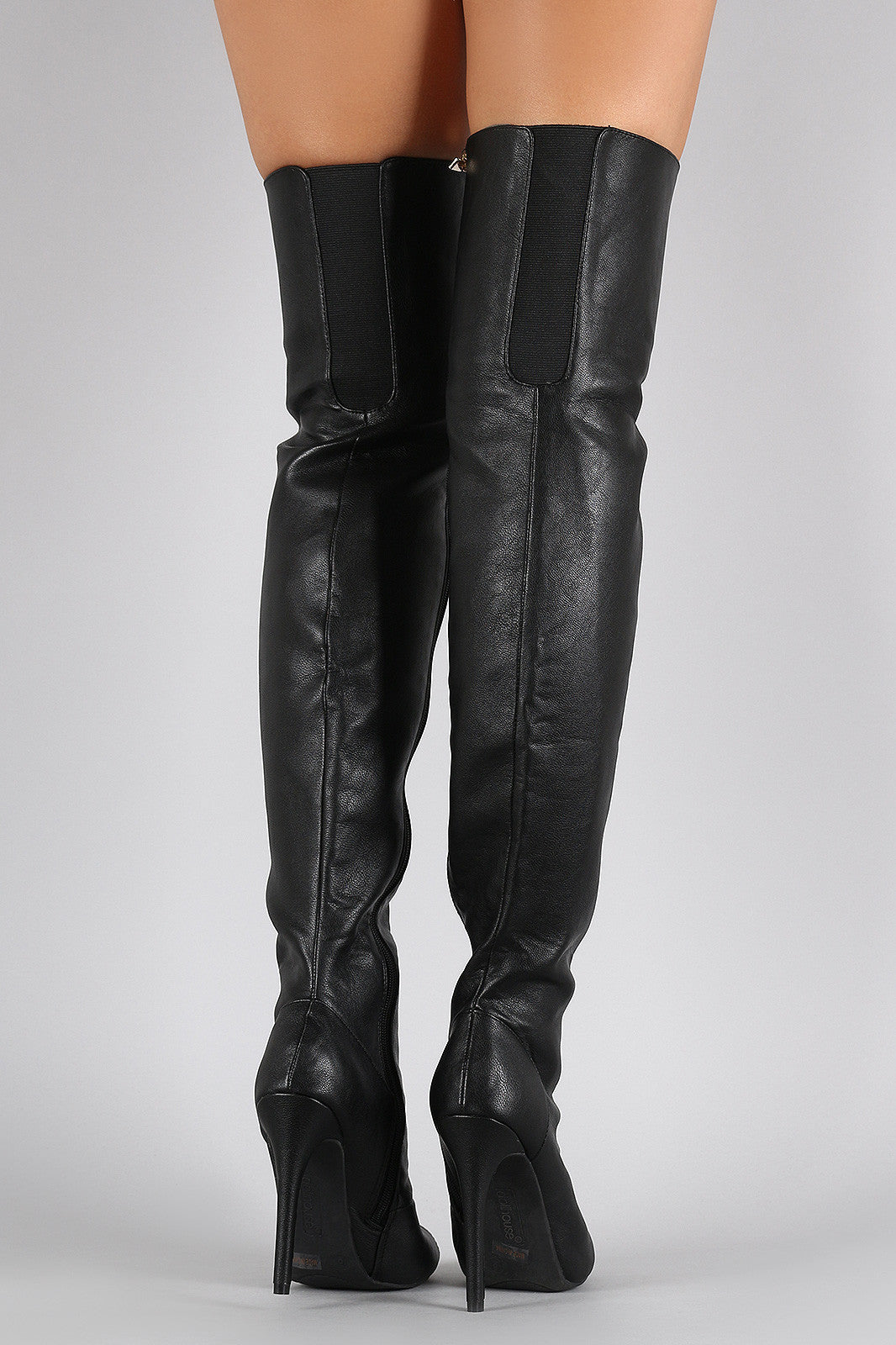 Dollhouse Vegan Leather Lace Up Peep Toe Stiletto Thigh High Boots