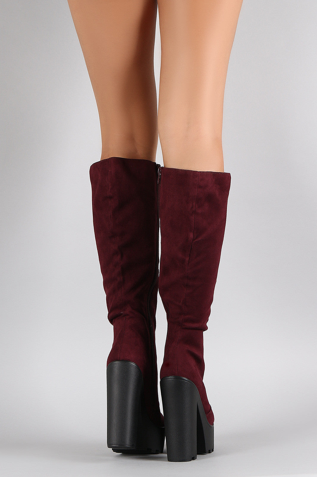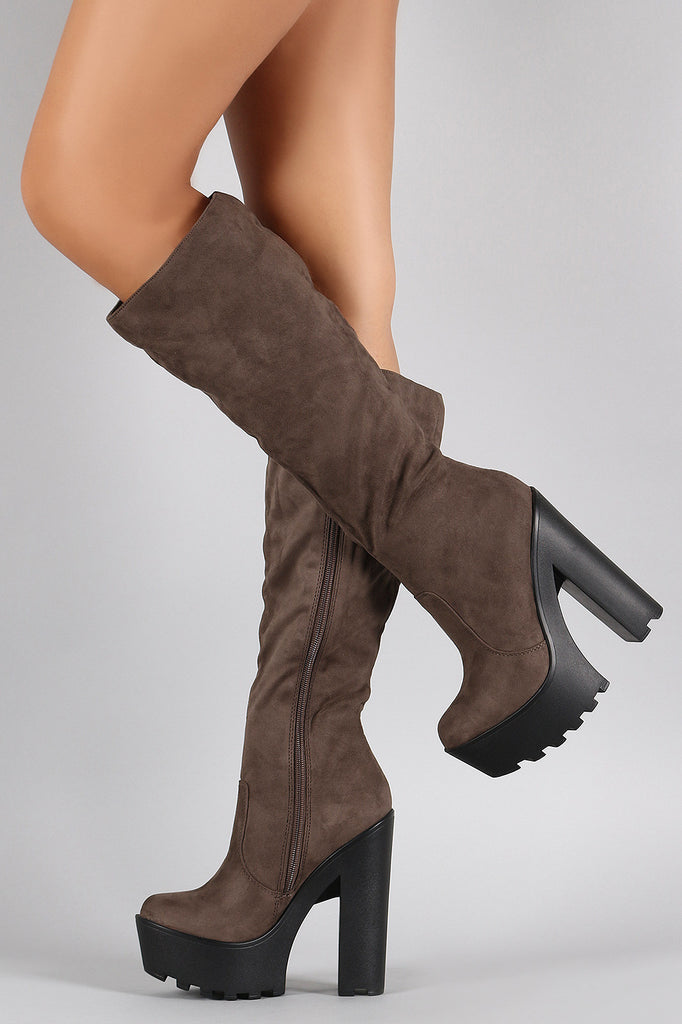 These striking lug sole , and chunky platform heel. Finished with cushioned insole, smooth interior lining, and full-length side zipper closure for easy on/off.Material: Faux Suede (man-made)Sole: Treaded
