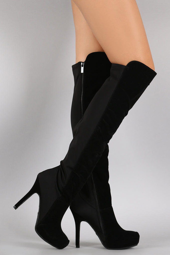 Dollhouse Suede Lycra Panel Stiletto Over-The-Knee Boots