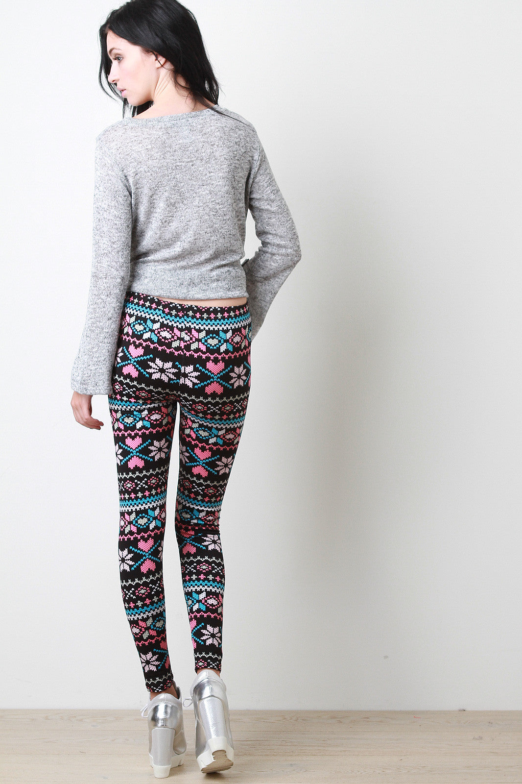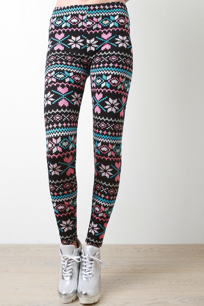These tight legging pants features an elasticized waist, stretchy taper cut legs, and fair isle pattern design. Accessories sold separately. 92% Polyester, 8% Spandex.
