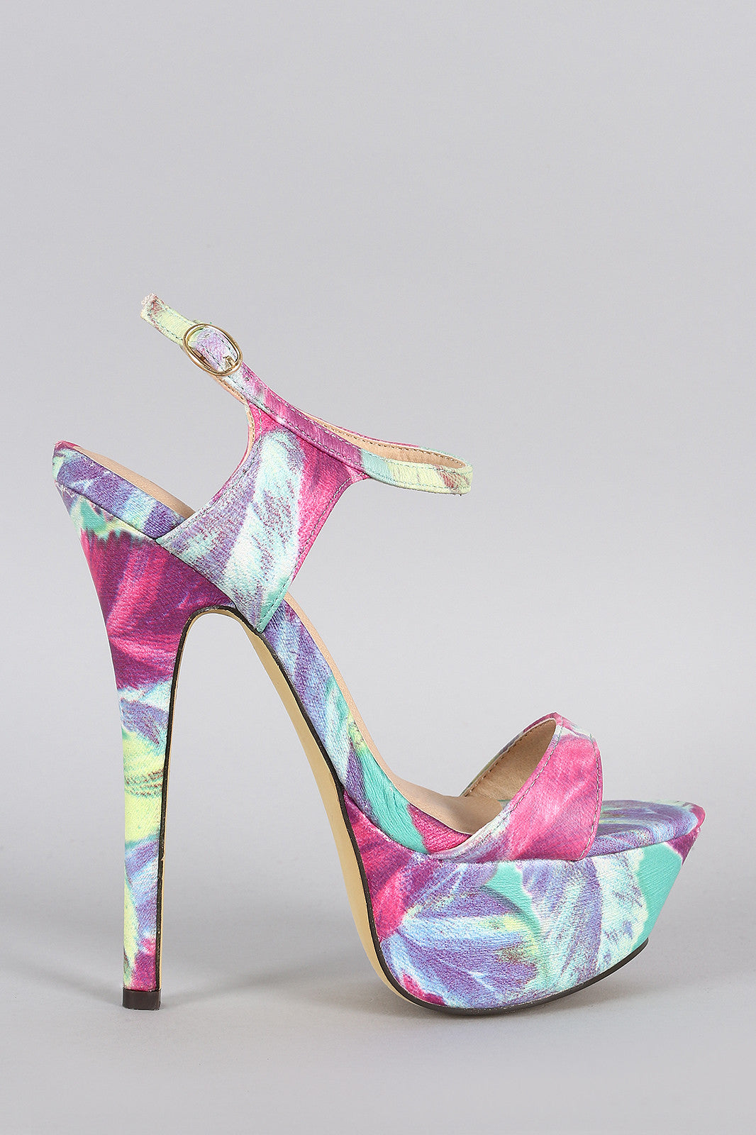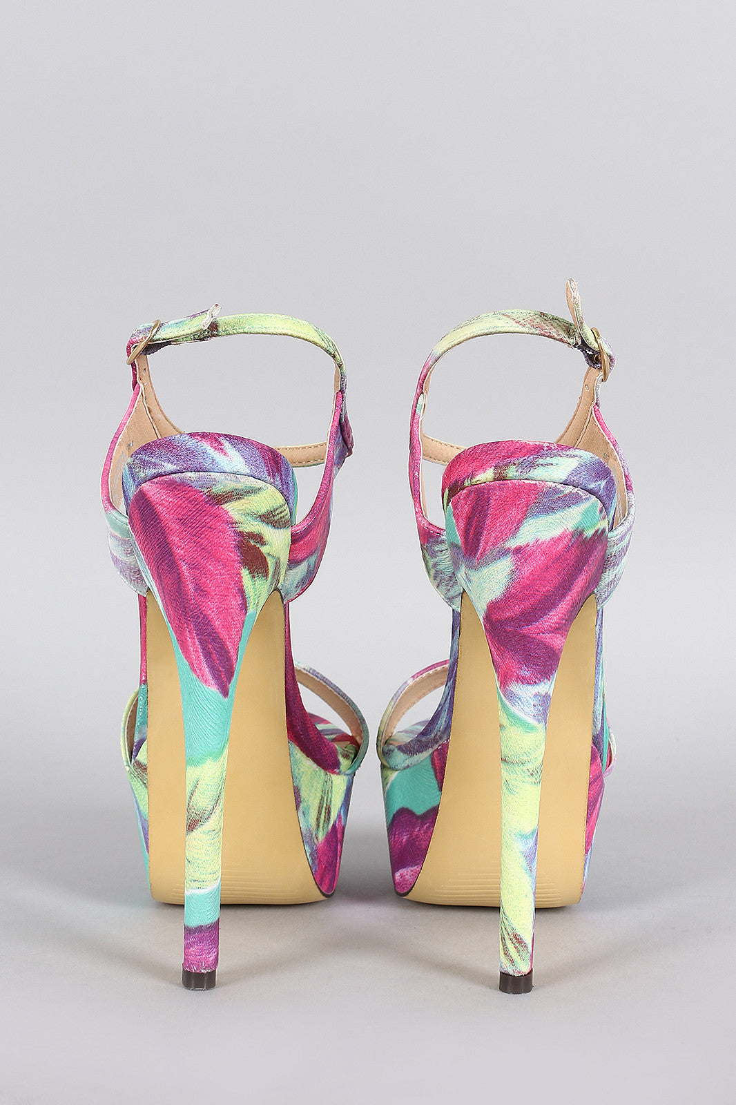 This attractive heel features an open toe silhouette, beautiful feather print leatherette throughout, single band across vamp, and stiletto heel. Finished with lightly padded insole and adjustable ankle strap with buckle closure.Material: Leatherette (man-made)Sole: Synthetic