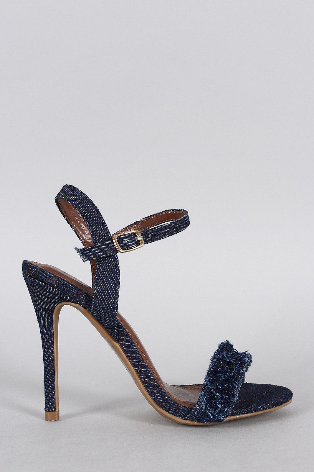 This denim fluff on the single strap across the upper vamp. Finished with stitching detail along the insole.