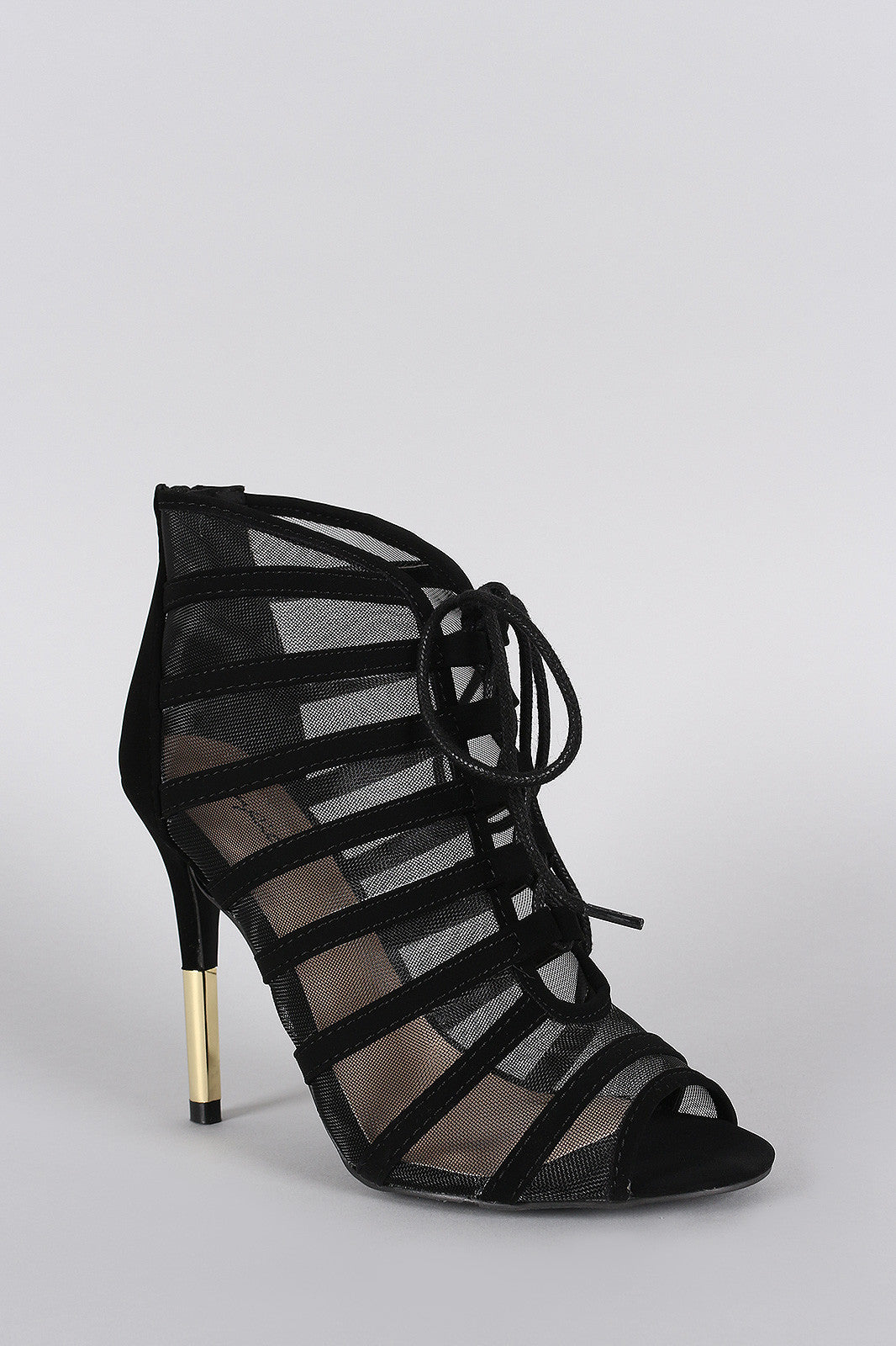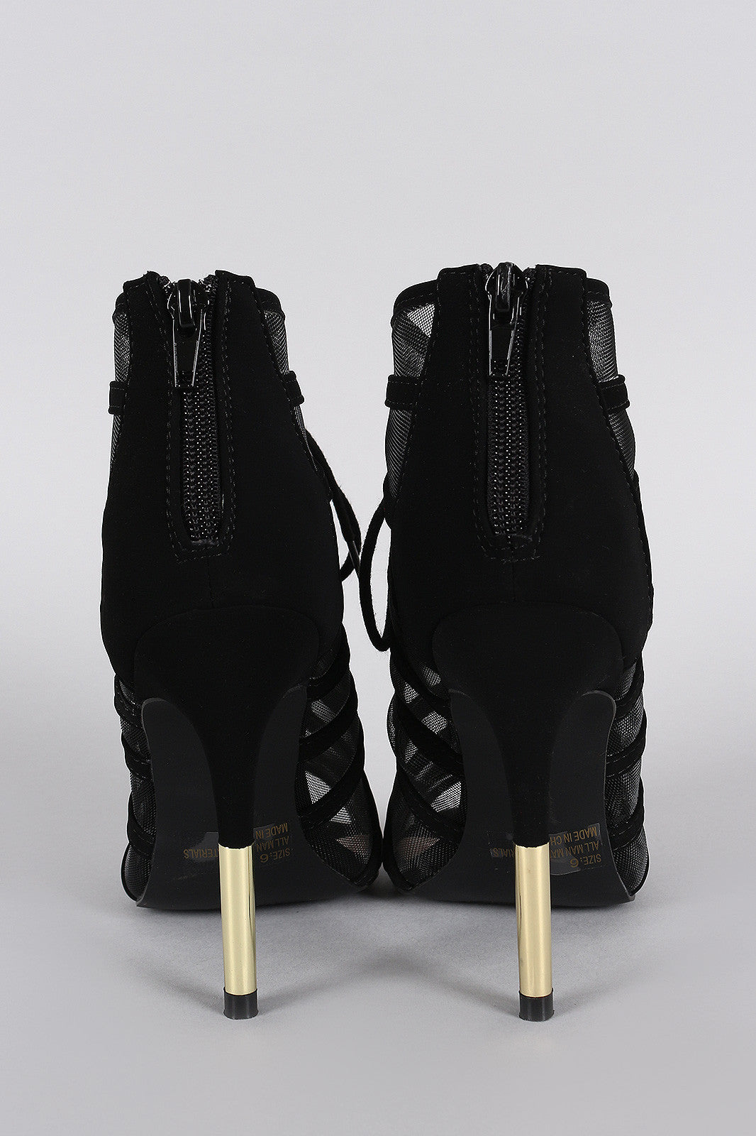 This fashionable peep toe single sole , and metallic accent stiletto heel. Finished with lightly padded insole and rear zipper closure for easy on/off.Material: Nubuck/Mesh (man-made)Sole: Synthetic