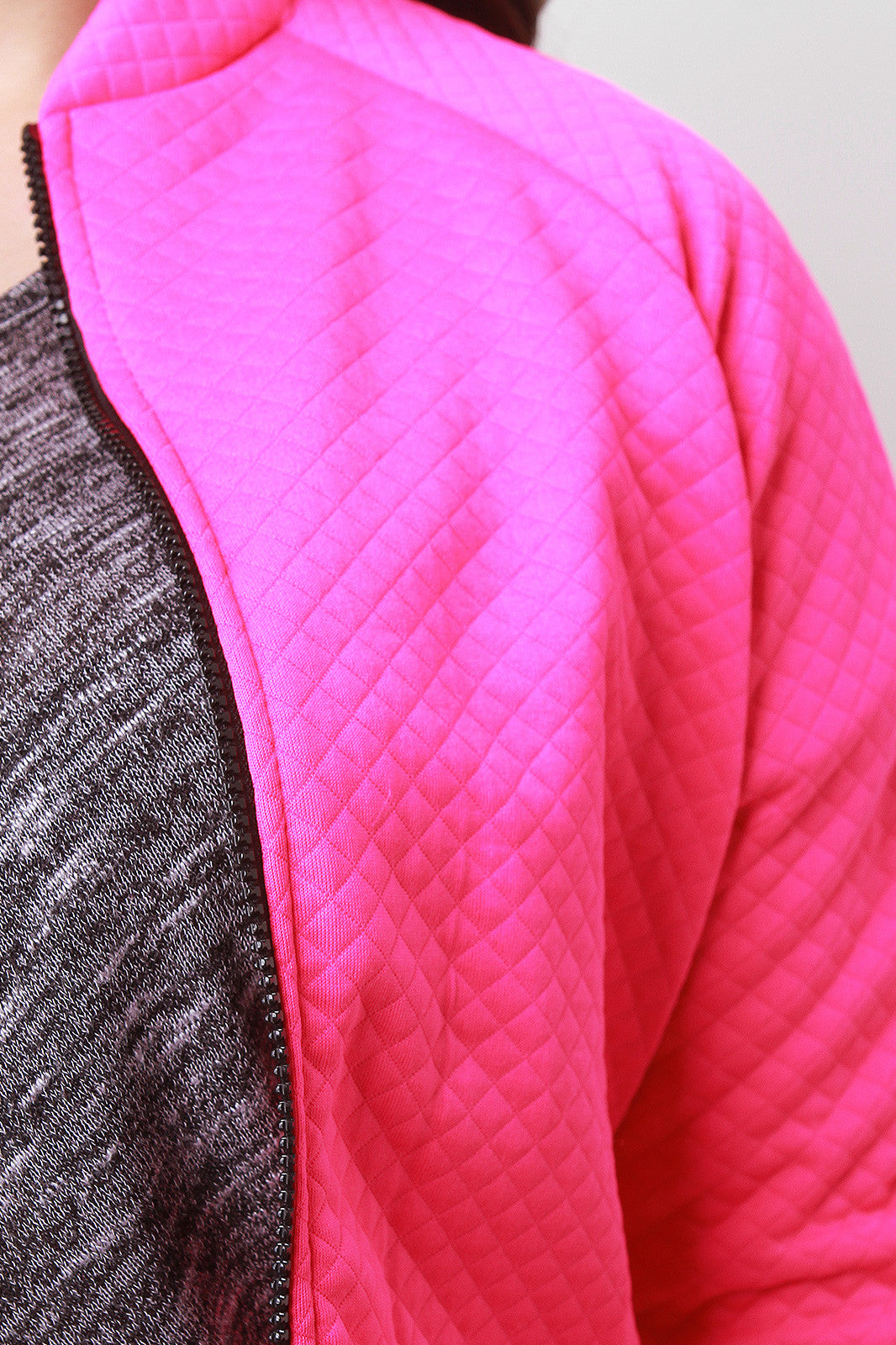 This plus size bomber jacket features an embossed quilted pattern throughout, zip-up front, long sleeves with cuffs, two side pockets, and finished with cuff hemline. Accessories sold separately. 95% Polyester, 5% spandex.