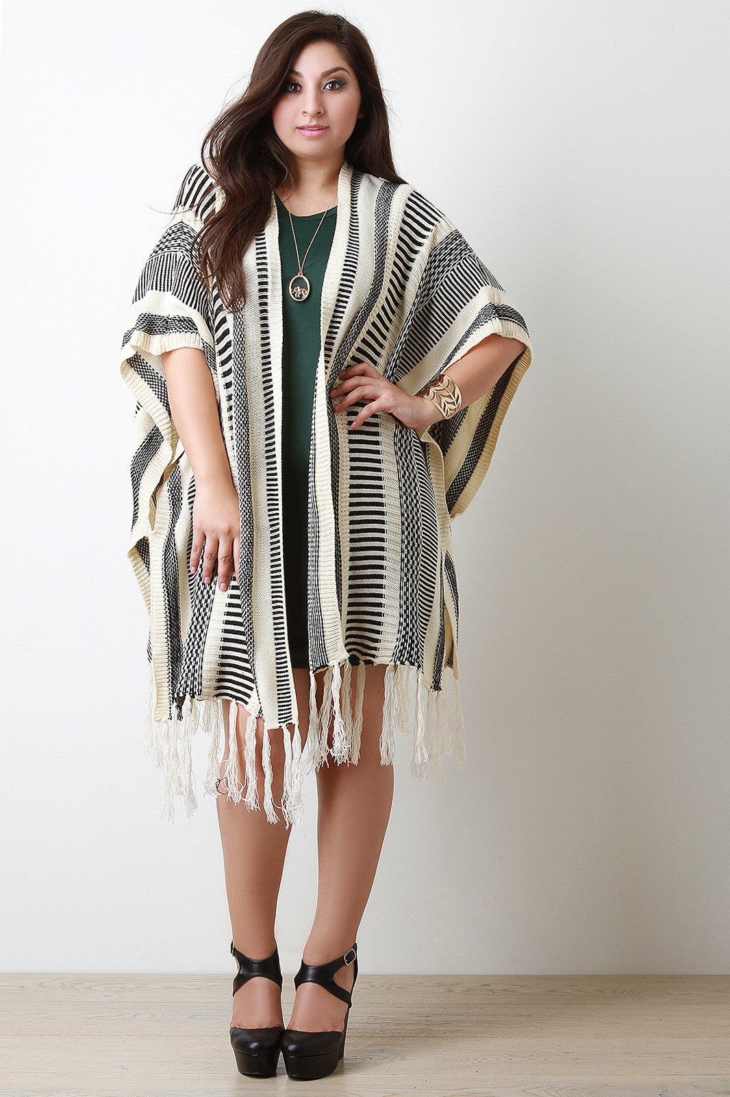 A fringe hem. Accessories sold separately. 100% Acrylic.