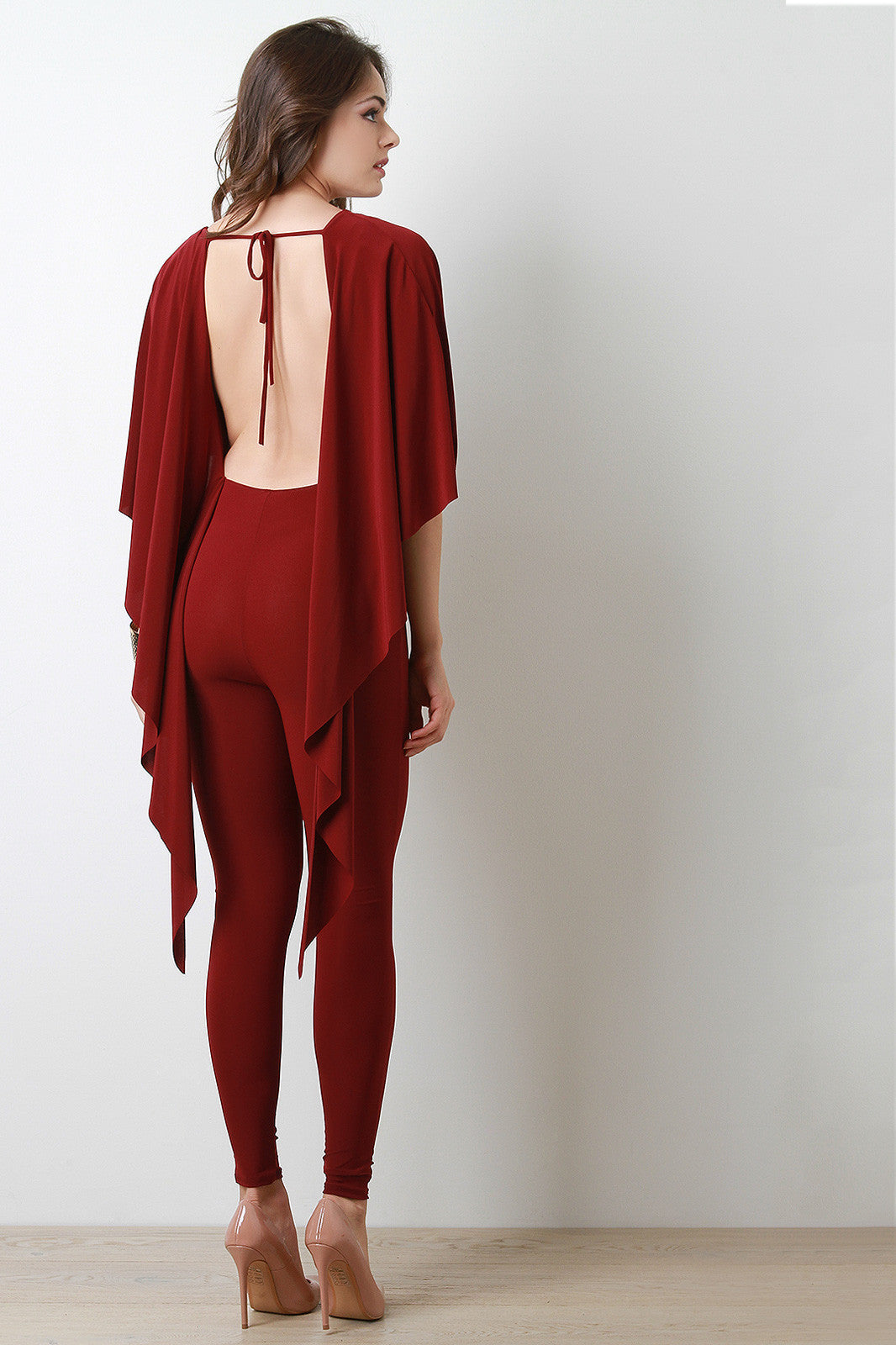 A bodycon tapered legs . Finished with an open back and self-tie straps at nape. Accessories sold separately. Made in U.S.A. 96% Polyester, 4% Spandex.