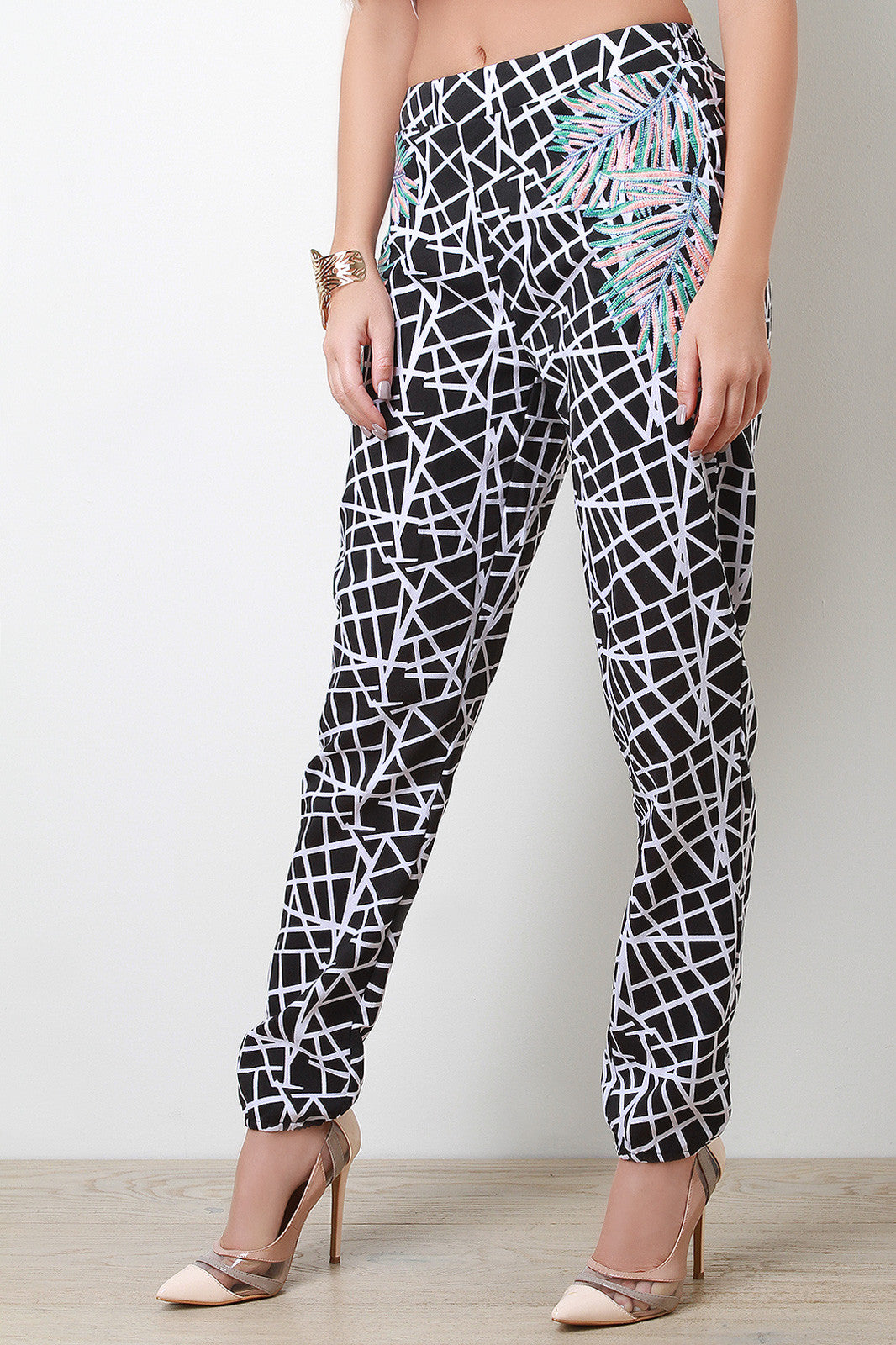 Embroidery Palms Graphic Trouser