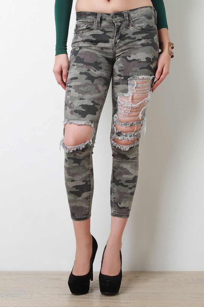 These casual jeans feature camouflage denim, ripped accents, functional five pocket design, five belt loops, and capri design. Accessories sold separately. 98% Polyester, 2% Algodon.