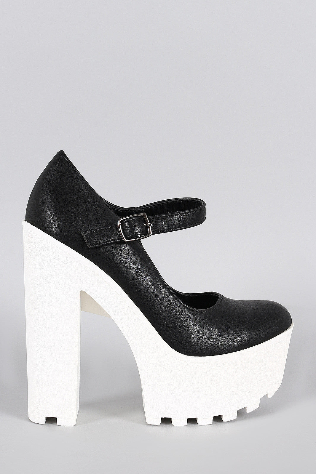 This round toe lug sole platform, thick heel, and adjustable Mary Jane strap with buckle fastening. Finished with cushioned insole for comfort.Material: Leatherette (man-made)Sole: Treaded