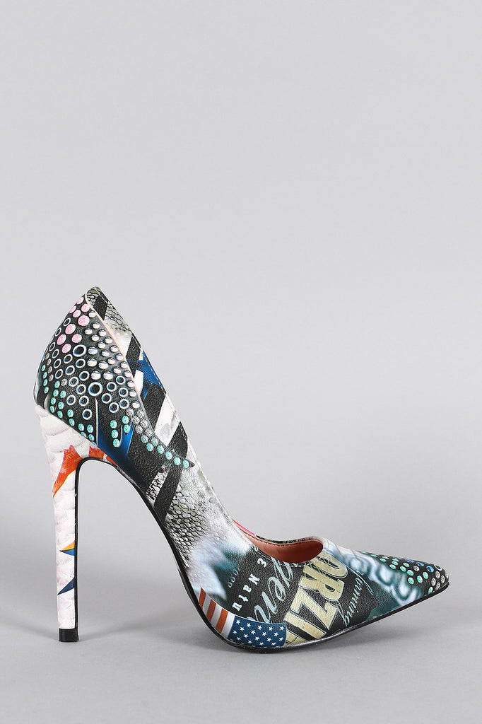 This sassy pointy toe silhouette, scooped vamp, and wrapped stiletto heel. Finished with lightly padded insole and easy slide style.Material: Vegan Leather (man-made)Sole: Synthetic