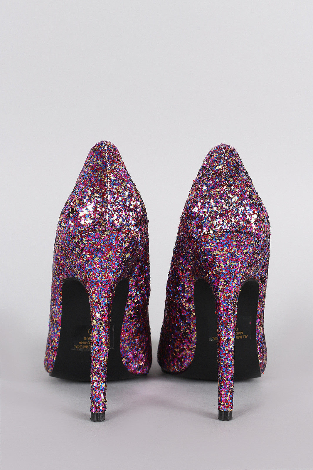 These eye-popping single sole , and wrapped stiletto heel. Finished with lightly cushioned insole and easy slide style.Material: Glitter (man-made)Sole: Synthetic