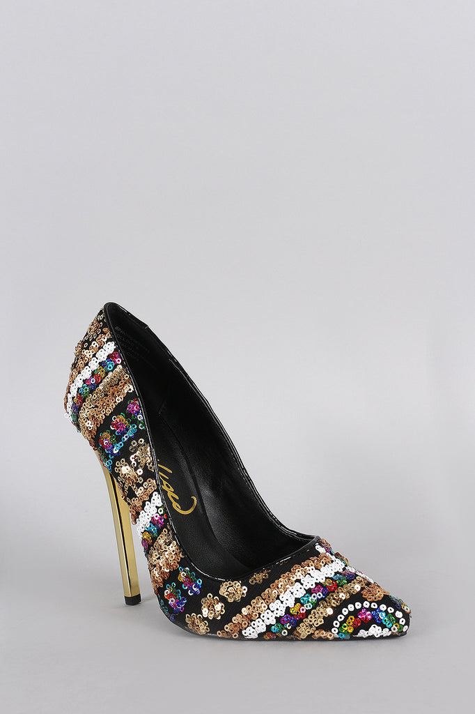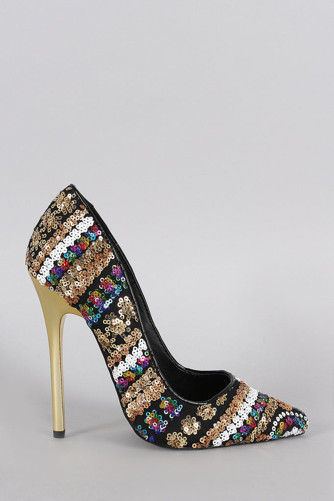 Privileged Metallic Sequin Pointy Toe Stiletto Pump