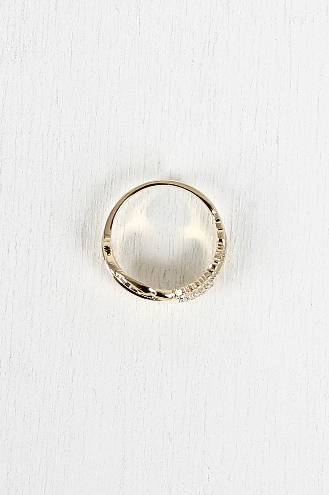 This glossy gold-tone feather quill design with rhinestone accents. Band is not adjustable.