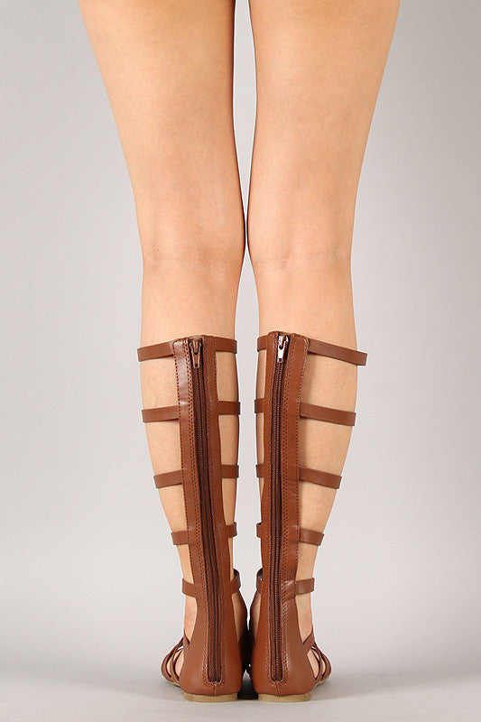 This unique sandal features an open toe, strappy caged design shaft, lightly padded insole, and rear zipper closure for easy on/off.Material: Vegan Leather (man-made)Sole: Rubber