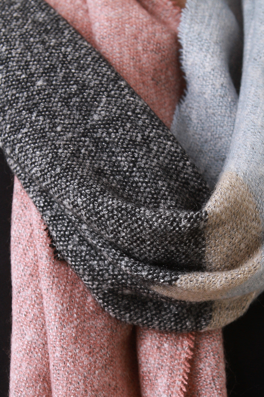 This very cozy piece of scarf in a marled knit fabrication with a semi-fringe design on the ends and multiple colors throughout. 100% Acrylic.