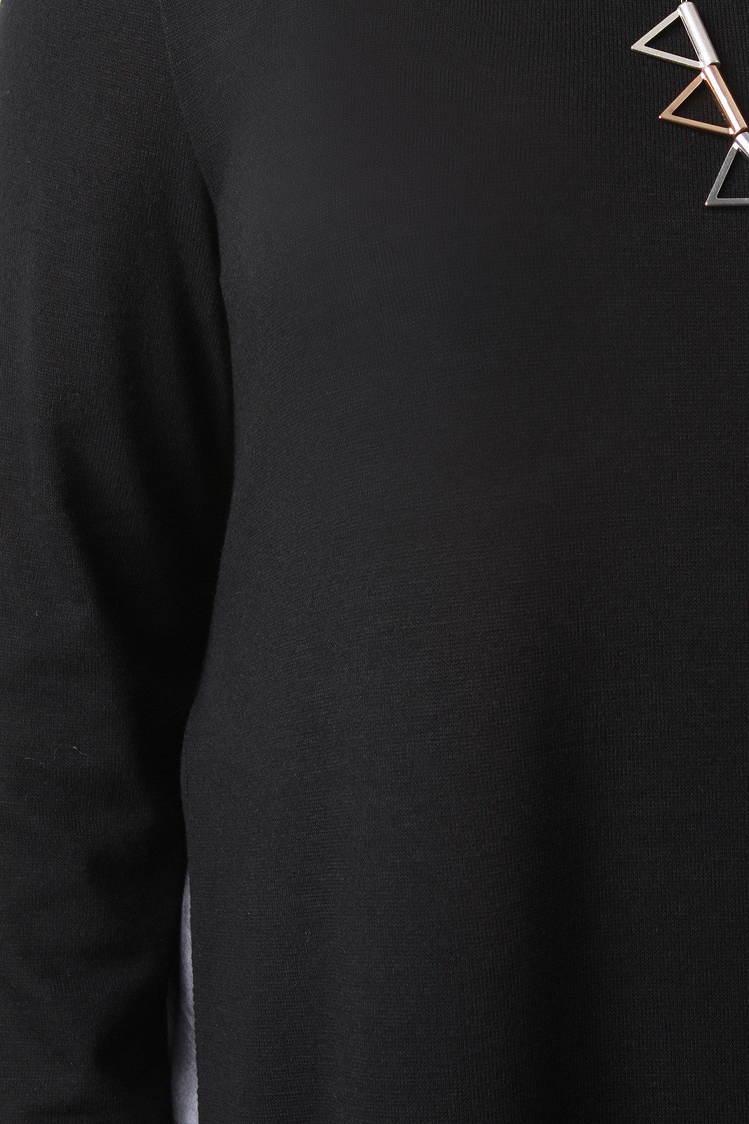 This fine knit plus size maxi top features a mock neckline, long sleeves, and side slits from the waist down. Accessories sold separately. Made in U.S.A. 65% Polyester, 35% Rayon.