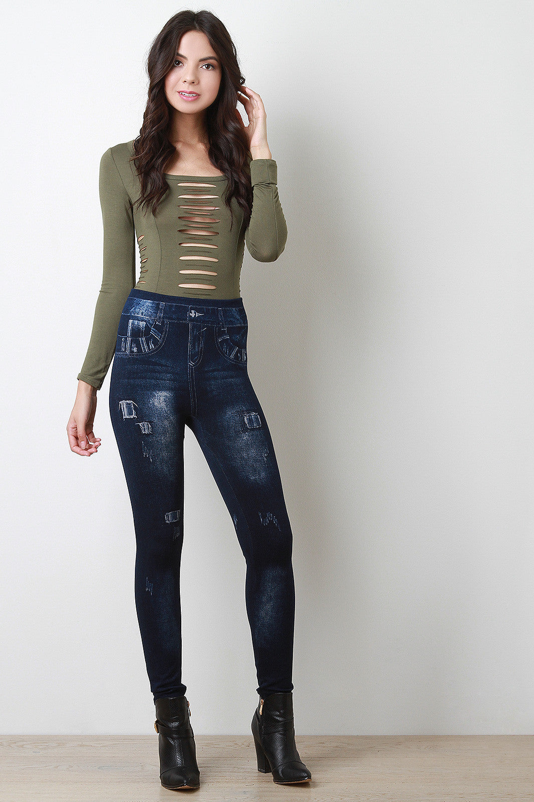 This sleeveless bodysuit features a round neckline, slashed details, brief bottom, and a double snap button closure. Accessories sold separately. Made in U.S.A. 95% Rayon, 5% Spandex.