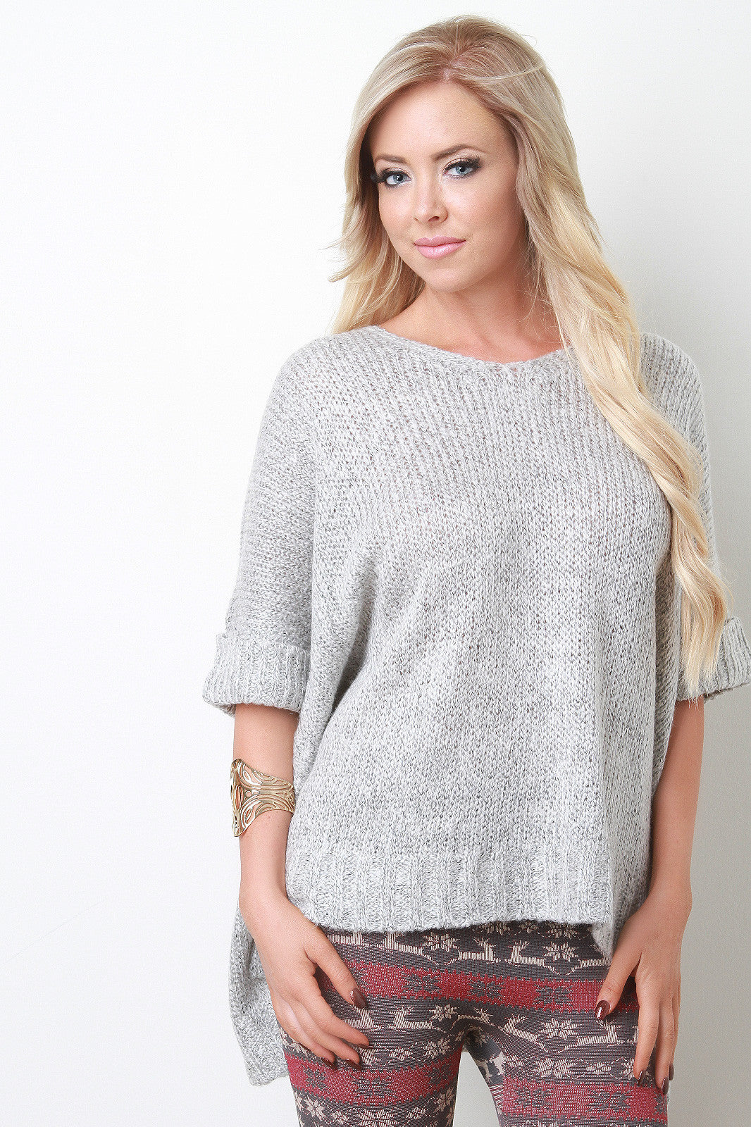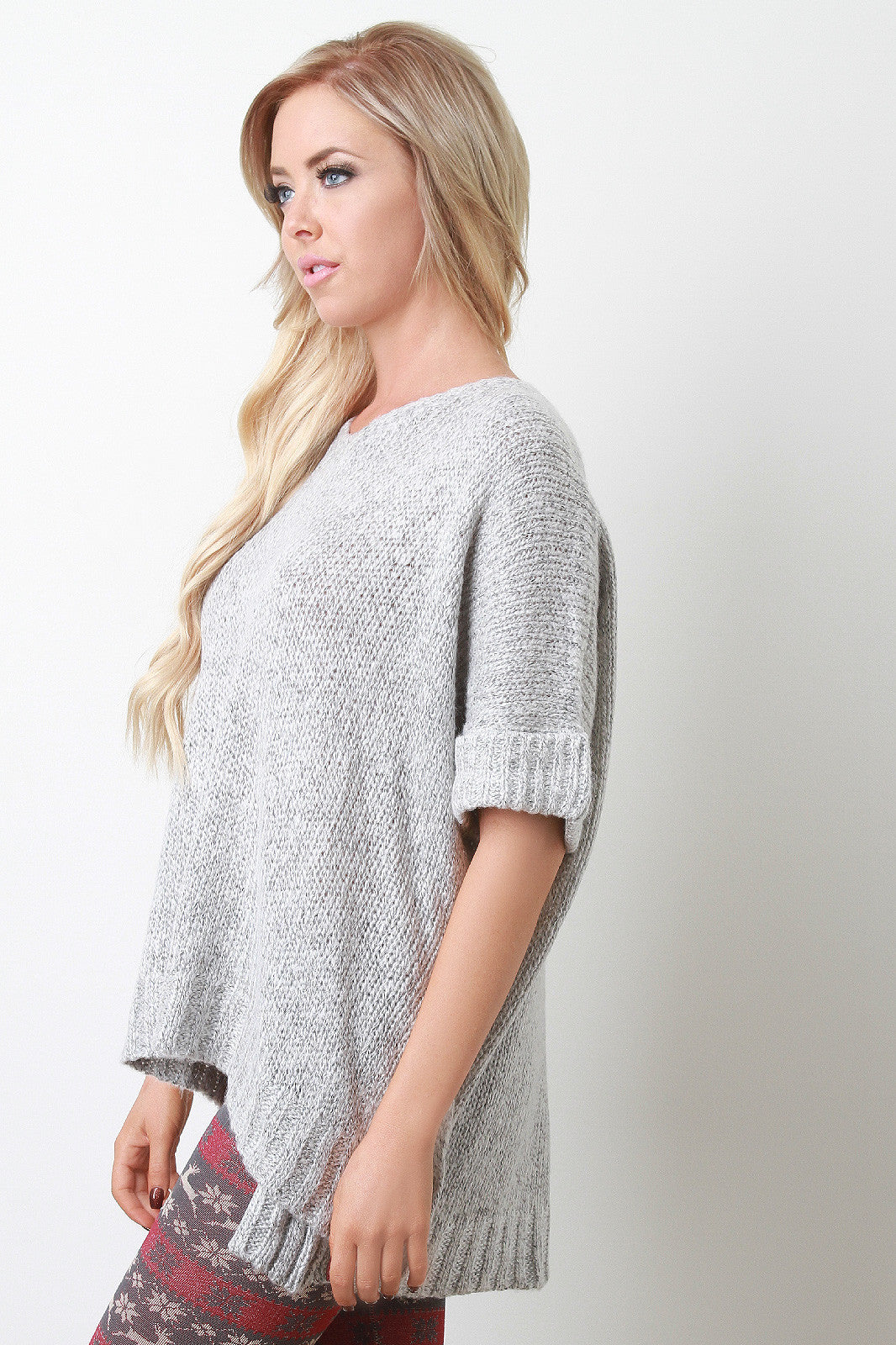 Marled Knit Side Slit Boxy Sweater Top