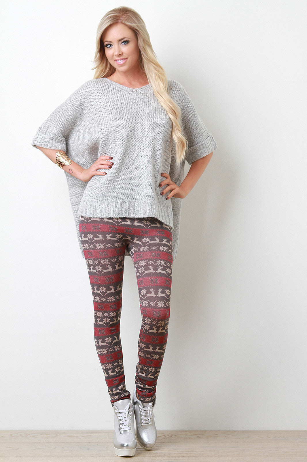 This boxy top features a marled knit fabrication, round neckline, short sleeves with cuff hem, side slits, and high-low hemline. Accessories sold separately. 60% Acrylic, 20% Polyester, 20% Polyamide.
