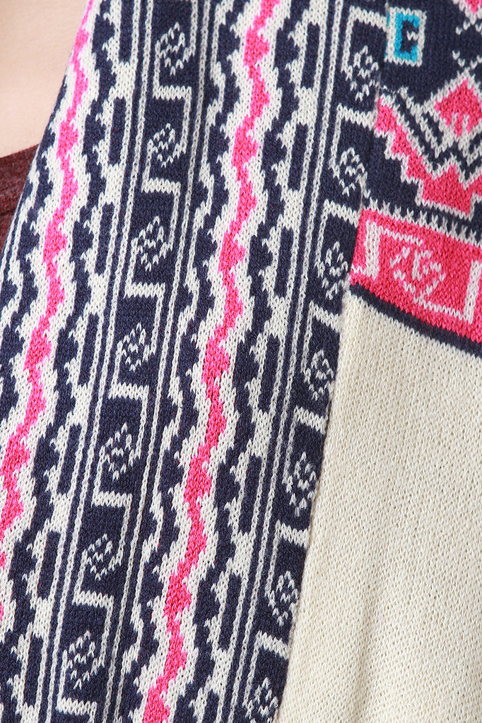 A multicolor tribal full sleeves with ribbed cuffs. Finished with handkerchief hemline. Accessories sold separately. 100% Acrylic.