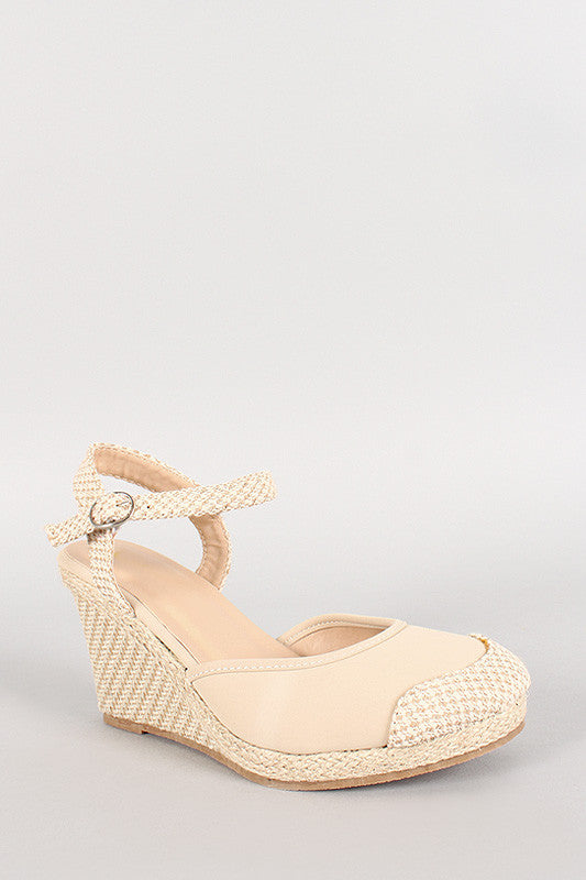 Featuring smooth nubuck/woven fabric upper, espadrille trim, round toe, scooped vamp, slingback with adjustable buckle closure, wedge heel, and finished with cushioned insole for comfort.Material: Nubuck/Fabric (man-made)Sole: Synthetic