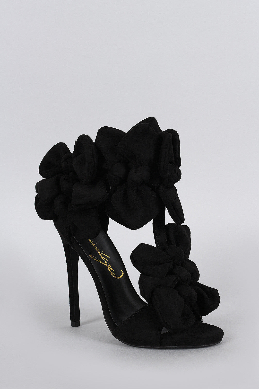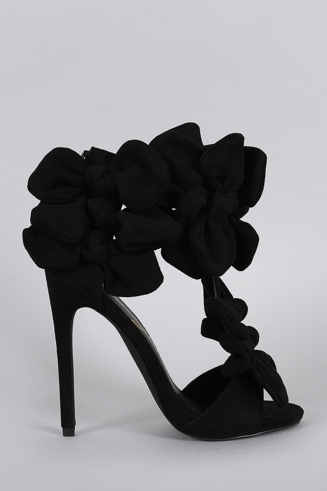 This lush knotted bow is t-strap  open toe construction . Features rear zipper back closure for easy on-off wear.