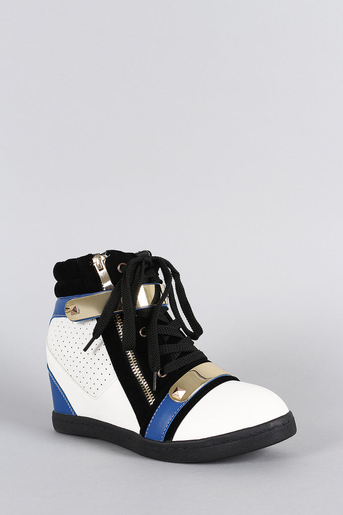 Liliana Colorblock Zipper Perforated High Top Lace Up Wedge Sneaker