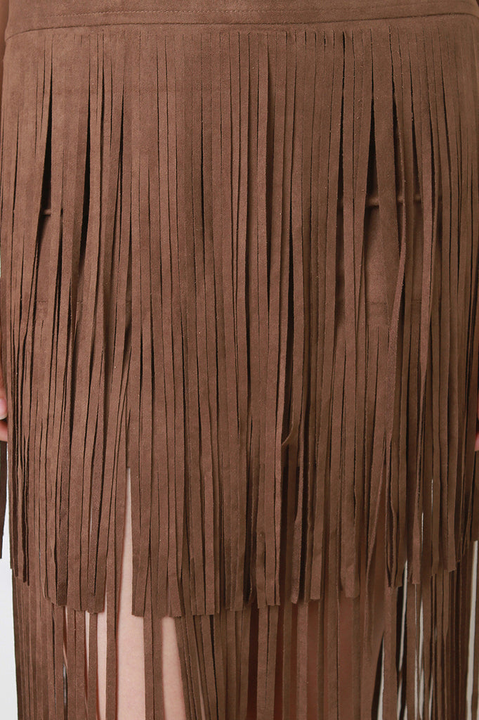 A fringe skirt. Finished with princess seams, back zipper closure, and sculpture fit. Partially lined. Accessories sold separately. Shell: 100% Polyester. Lining: 100% Polyester.