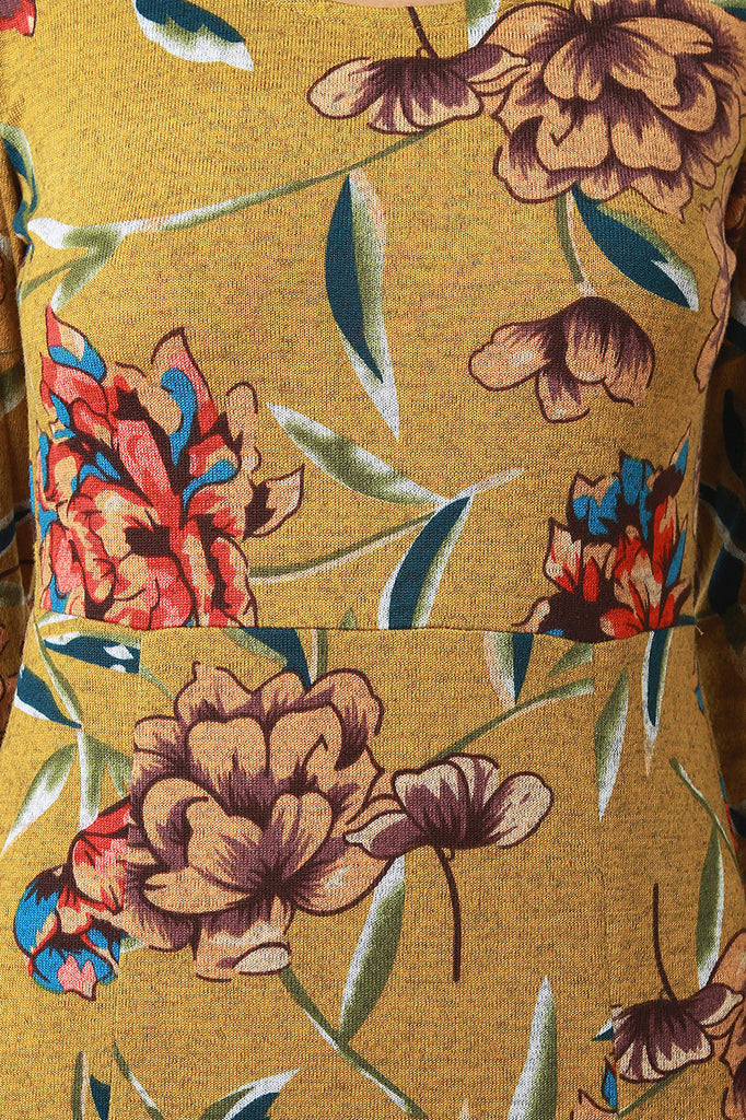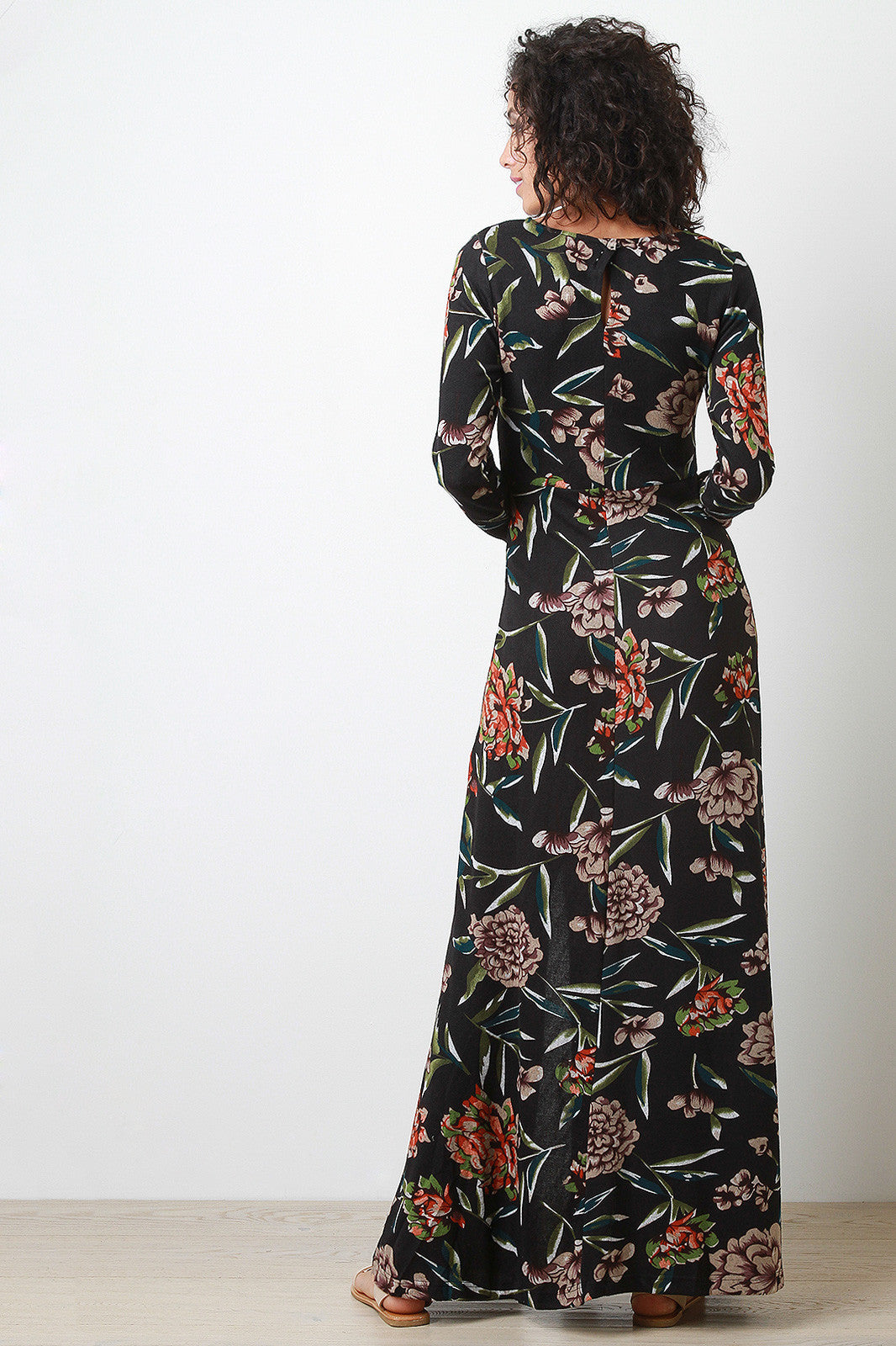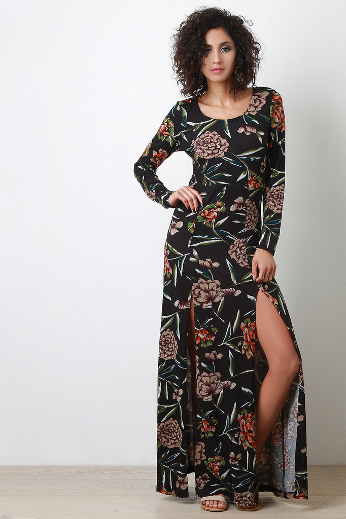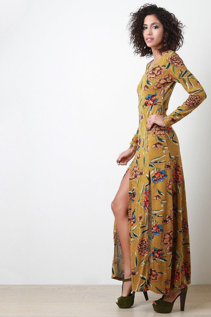 Floral Slit Maxi Sweater Long Sleeved Dress