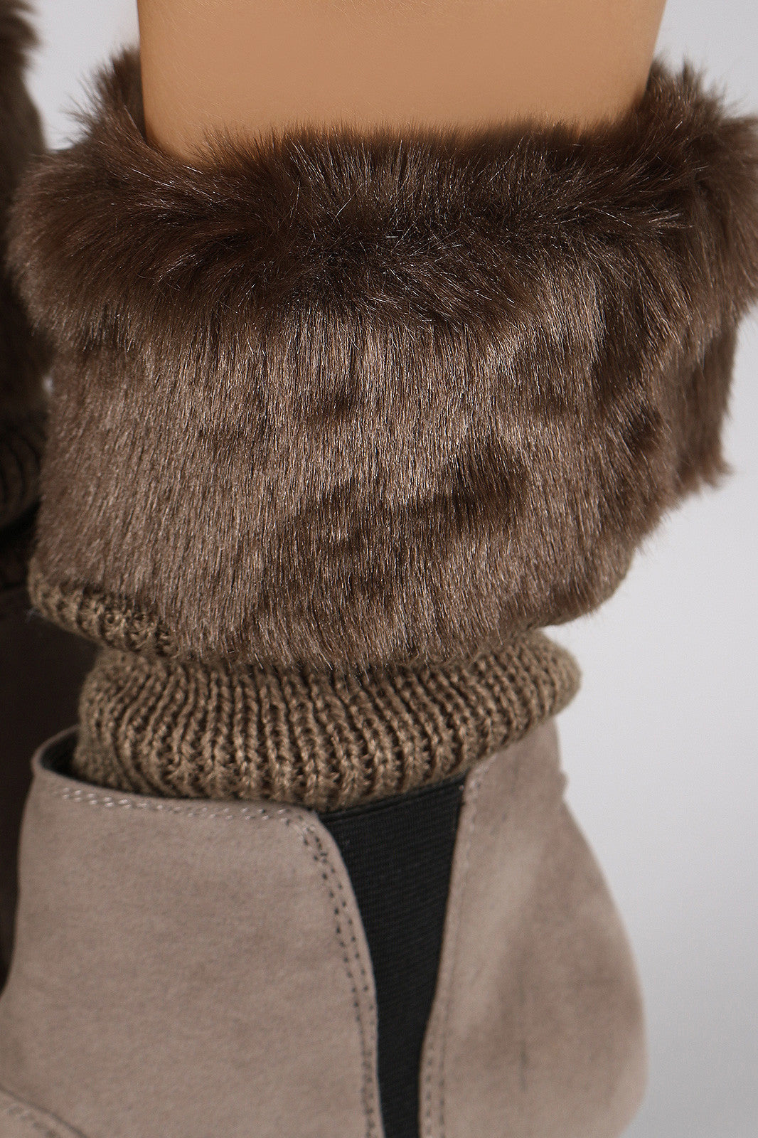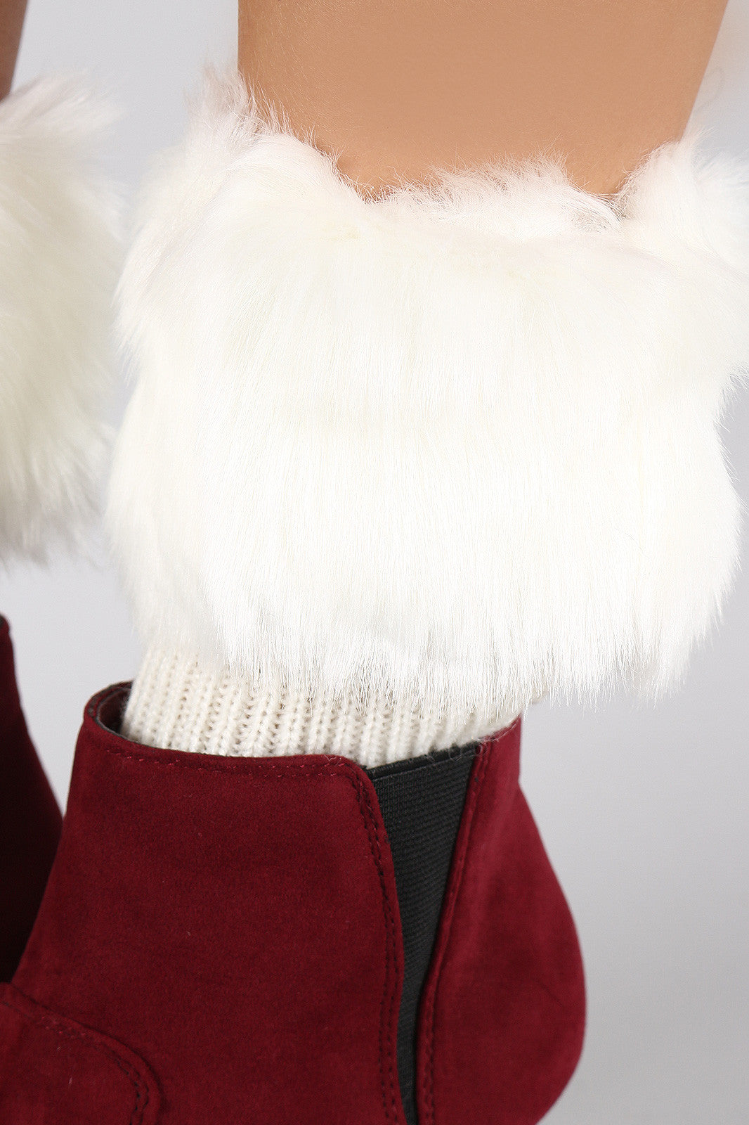 These lovely faux fur cuff and stretchy ribbed knit construction. Boots not included.